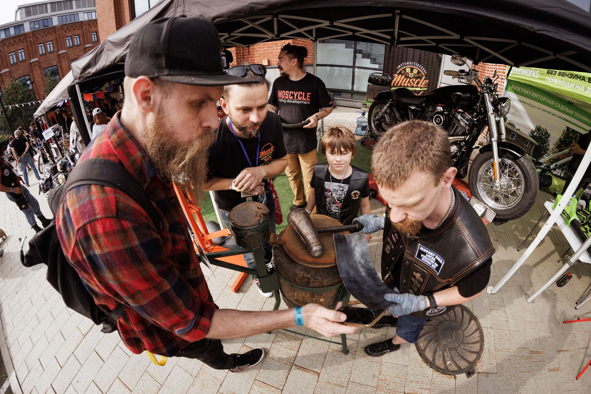 - Интерактивная зона "ГАРАЖ" уникальная тематическая зона в рамках фестиваля включающая различные стенды, где каждый гость, под присмотром специалиста, может попробовать себя в том или ином амплуа, например взять аэрограф или кисточку и нарисовать симметричные узоры (пинстрайпинг), узнать что такое штихель и на деле понять, как работает английское колесо взяв в руки металлическую заготовку! Помимо всего в этой зоне вы найдете локальные бренды, которые создают малотиражную продукцию для кастом проектов вилки спрингеры, рули, запчасти для кастомизации и многое многое другое